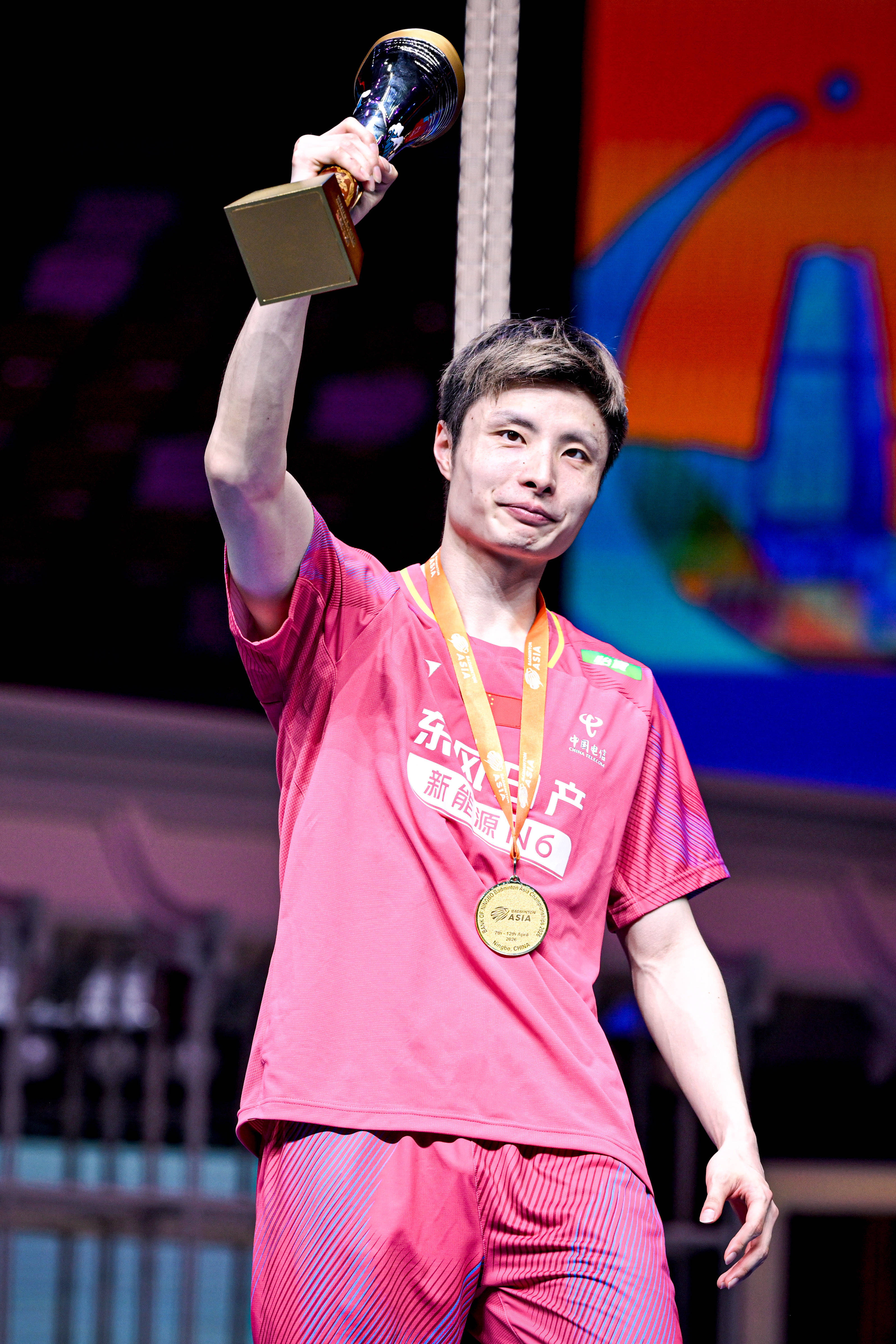 4月12日,石宇奇在颁奖仪式上举起奖杯。新华社记者 江汉 摄时隔七年再次踏上亚锦赛男单决赛赛场的石宇奇,此战面对一路过关斩将的“黑马”、印度选手阿尤什·谢蒂。比赛中,石宇奇没有给阿尤什太多机会,以21:8、21:10轻松获胜,解锁亚锦赛冠军。这也是国羽自2017年谌龙之后,再次有选手登上该项目最高领奖台。
